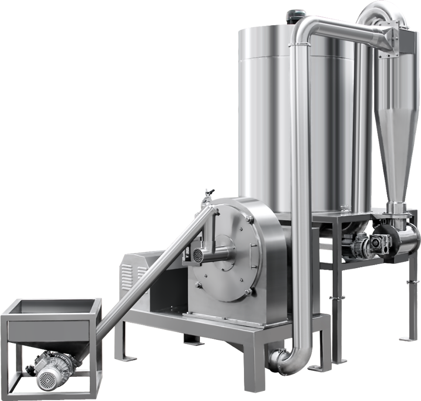 The machine uses a high-speed rotating vortex motion in the grinding room had a strong airflow. Material in the negative pressure is sucked into the feed opening crushing chamber between the blade and the module in the powerful airflow, an impact, shearing and grinding, the grinding chamber by a stream of the heat away, the heat generated during the grinding not rapid warming. Finished material flowing from the screen, increase productivity, grinding fineness mesh sieve by self-regulation, product fineness uniform and stable.